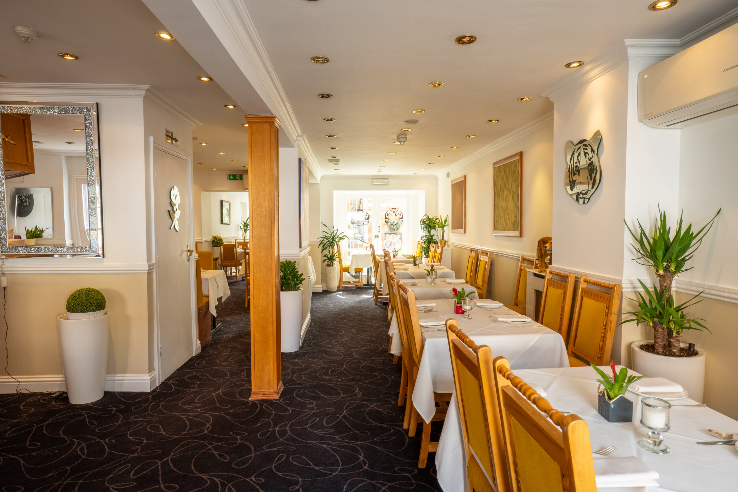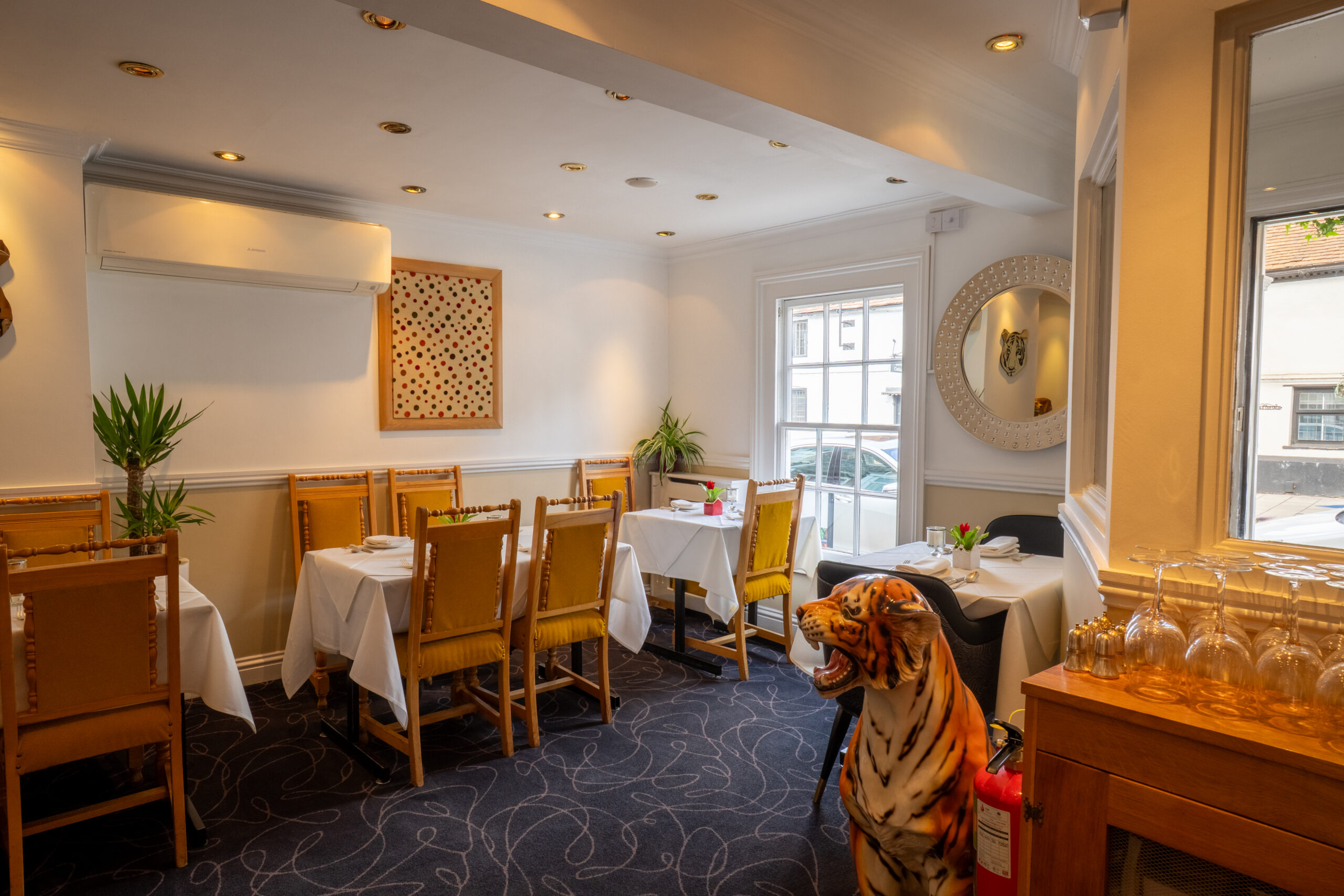 Set in the idilic location of Marlow. Tiger Garden caters for everyone with a welcoming and friendly atmosphere, our elegantly decorated restaurant is the perfect complement to our food. We would be delighted to welcome you and help you make a selection from the extensive menu. We have a full bar available and you will find our service attentive but not obtrusive.